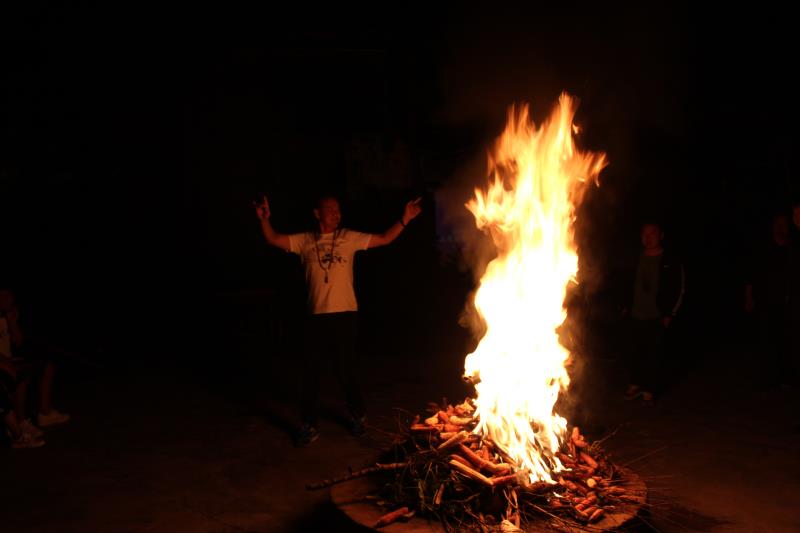飯后,我們在老板的帶領(lǐng)下進(jìn)行了篝火晚會,深深的被濃厚的民族氣息所感染,大家載歌載舞,愉快的一天也在篝火下結(jié)束!哦~對了,告訴你一個有緣的故事,彝人部落的老板是我們云南江鈴的老客戶,所以這個世界,終將會讓我們相聚!